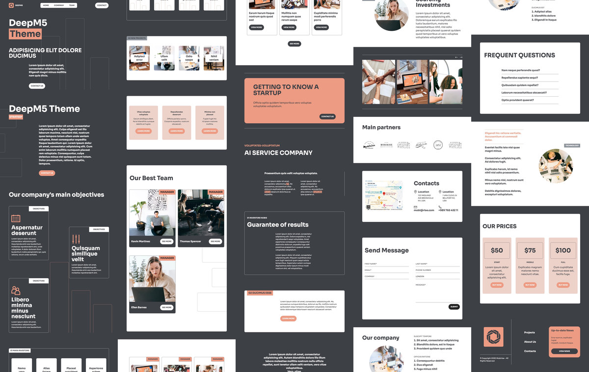 DeepM5 is a theme for a AI service company, corporate, creative, IT company, IT solutions, software, software company, SEO agency, freelance, tech startup, software development, tech, tech blog, tech support, technology.